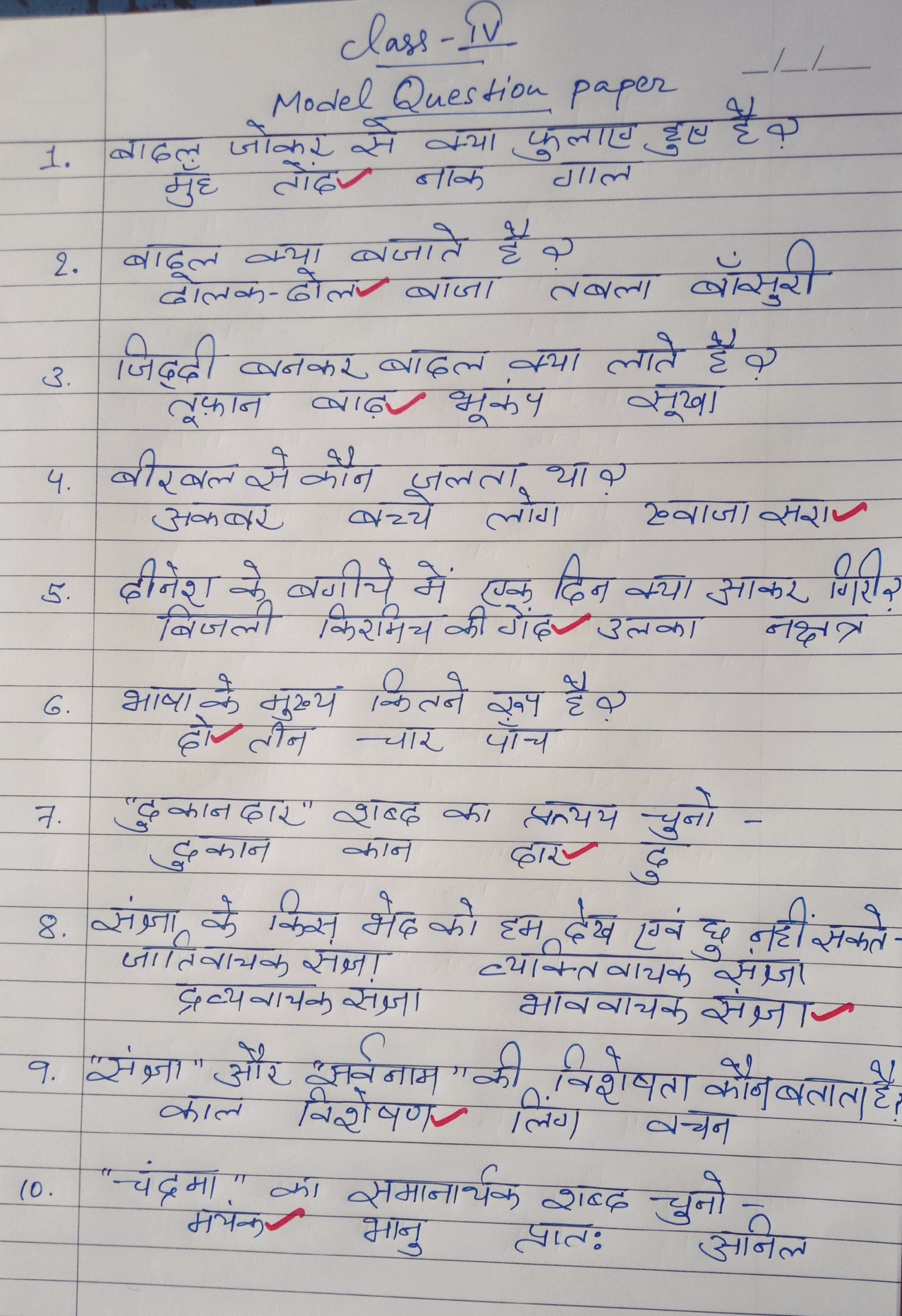 - Hindi worksheet solutions