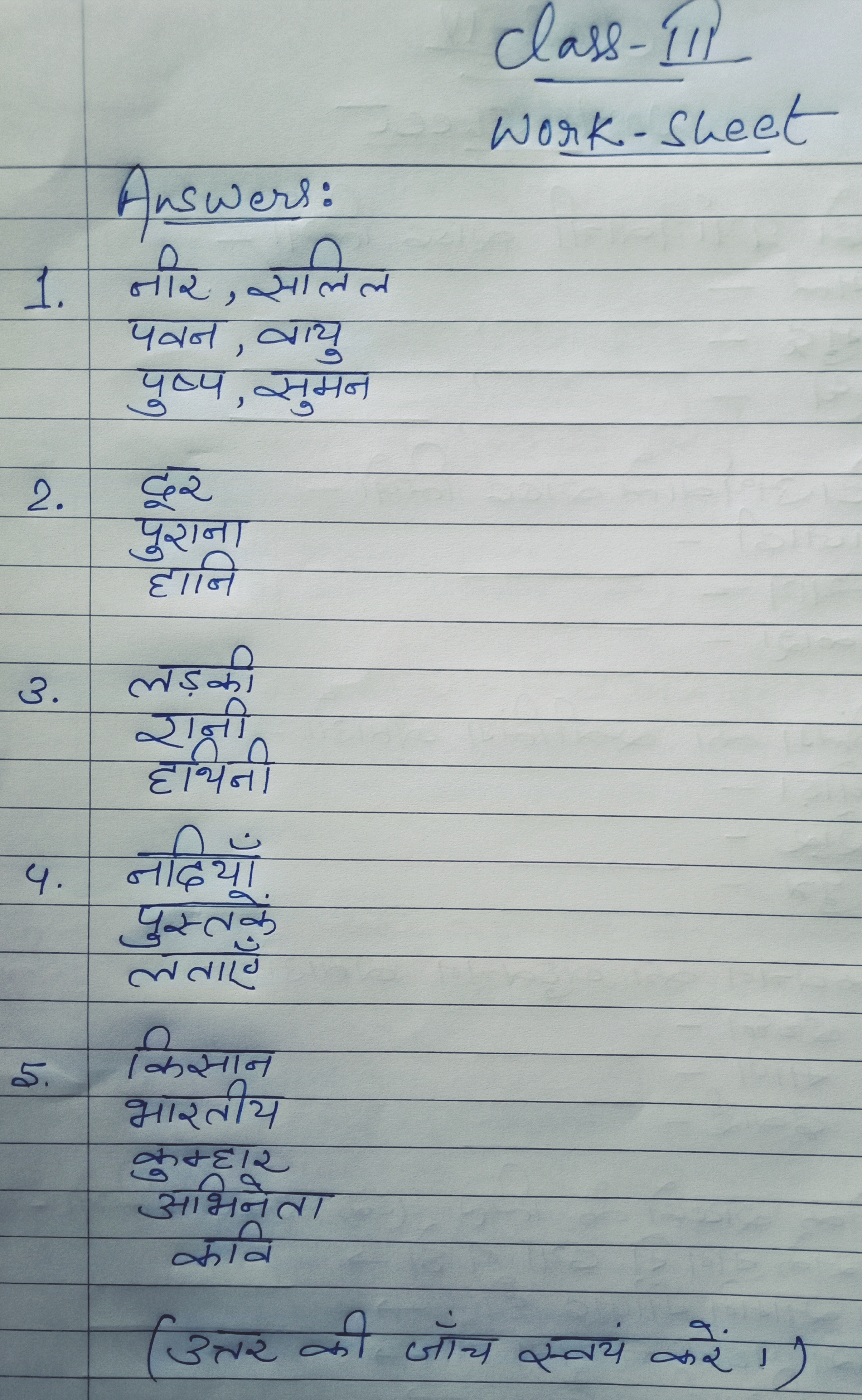 - Hindi worksheet solutions