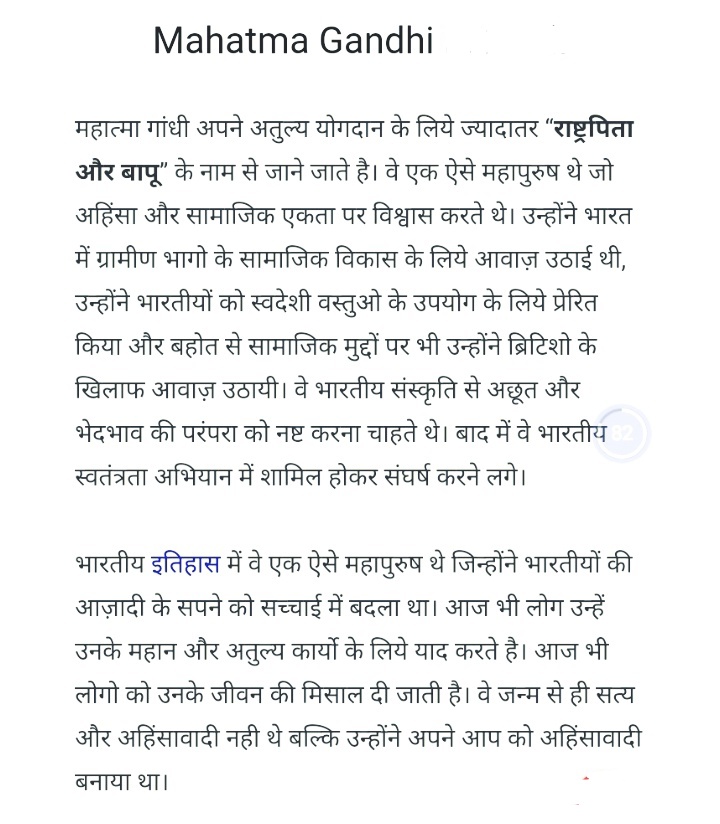 - Mahatma Gandhi (Hindi paragraph writing)