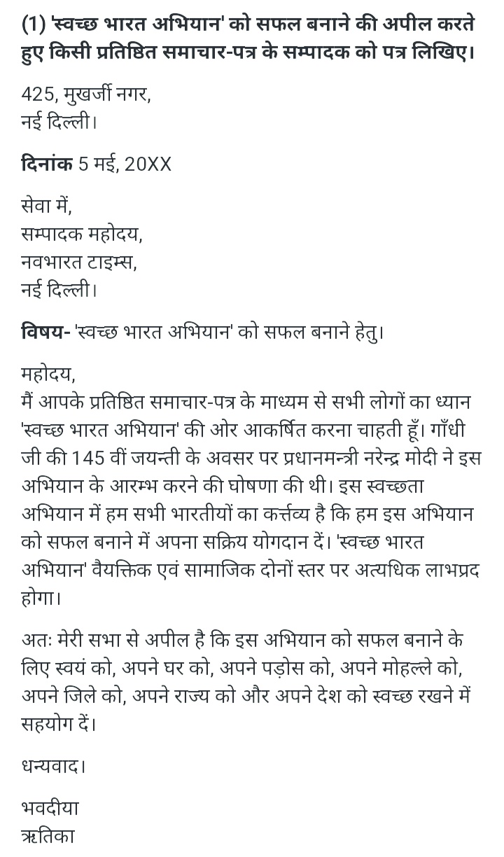 - Letter writing in Hindi