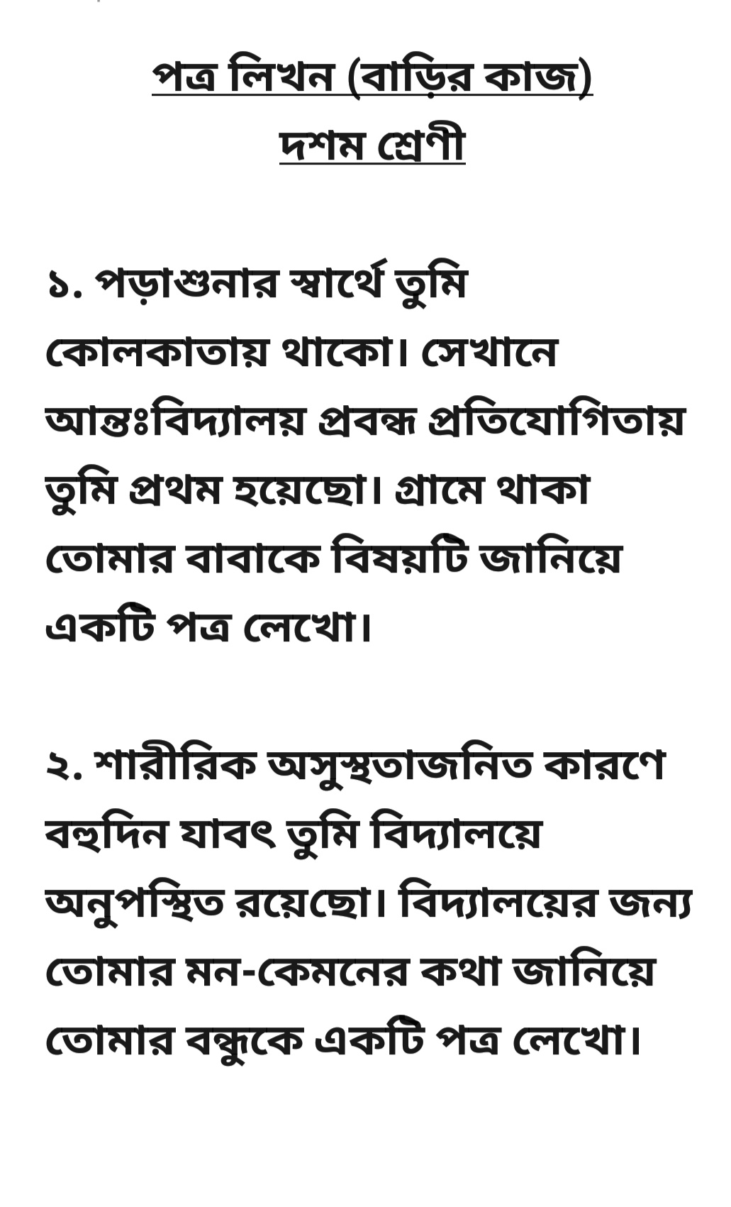 পত্র লিখন (অনুশীলনী) / বাড়ির কাজ (পর্ব-২)